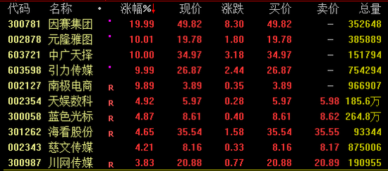 短剧游戏观念当天再度活跃,截止收盘,因赛集团、元隆雅图、中广天择、引力传媒涨停,海看股份涨近5%。