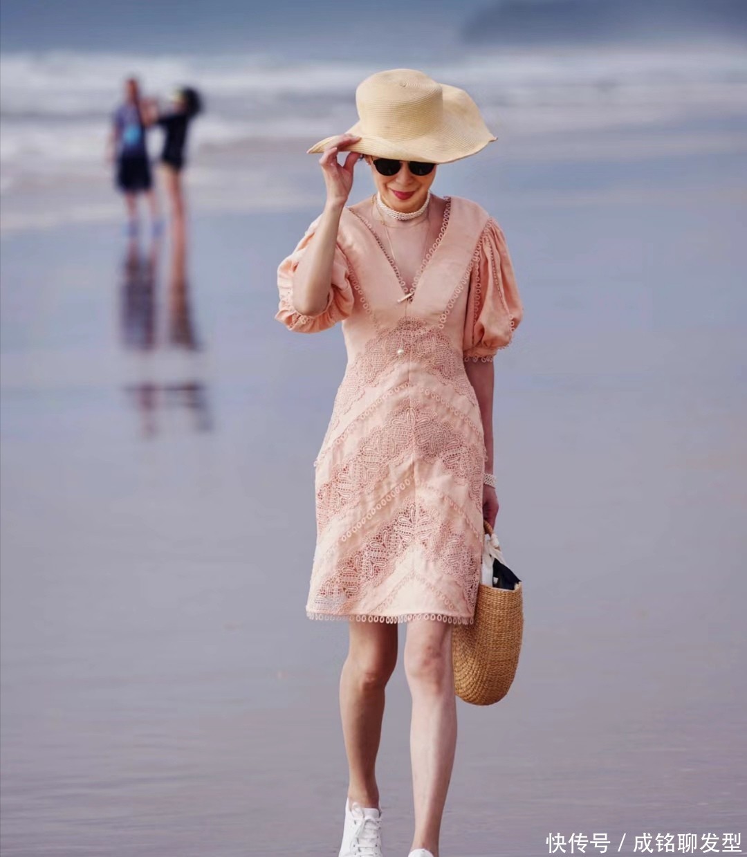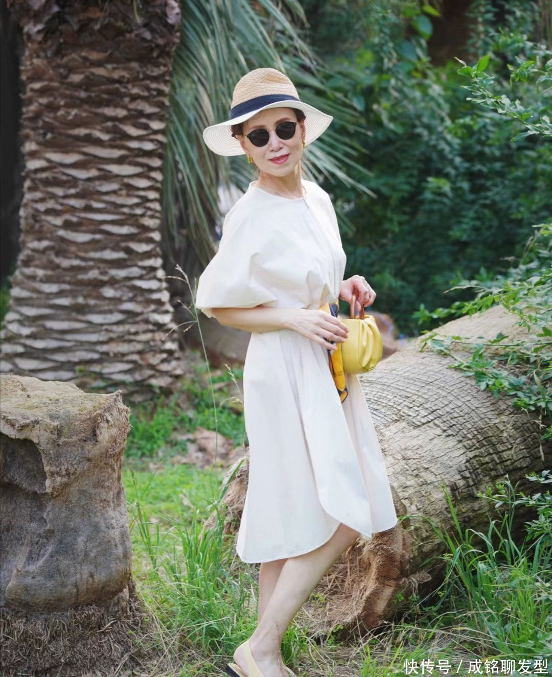 不错将一头长发盘成低盘发的视觉效力,当发量重重叠叠的缠绕在一齐时,亦然一种优化发量的状貌。而这位女士还加入了浅卡其色的凉帽的点缀,一刹就领有了一种高档的好意思感。加上她自身脸型就相配的瘦弱紧致,率领这种帽子,更能显得脸型很工整。