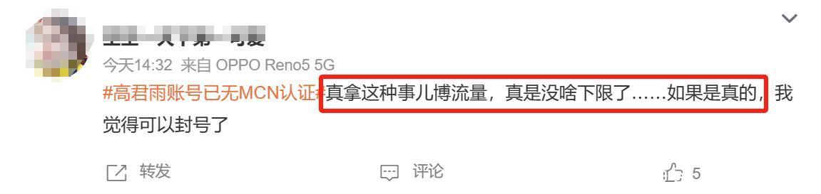 在被拆穿之后,关系舆情冲上热搜,高君雨账号终于进行了复兴。其母亲代替儿子发声,径直坐实了网友的算计。