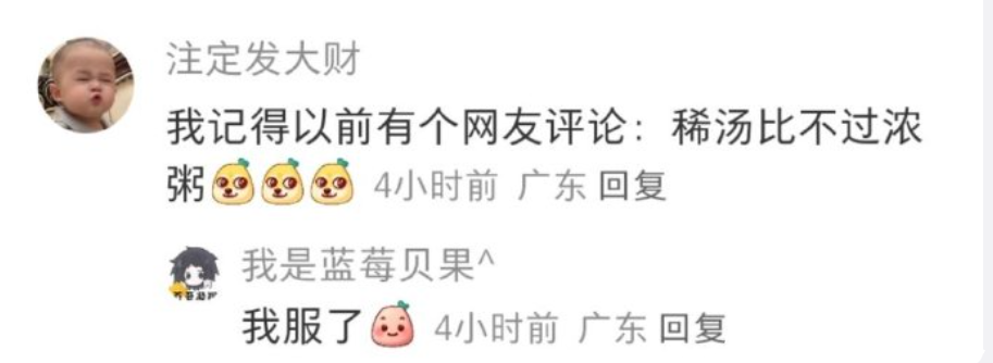 还有这句让东说念主佩服的不要不要的“我铭刻当年有个网友指摘:稀汤比不外浓粥。”